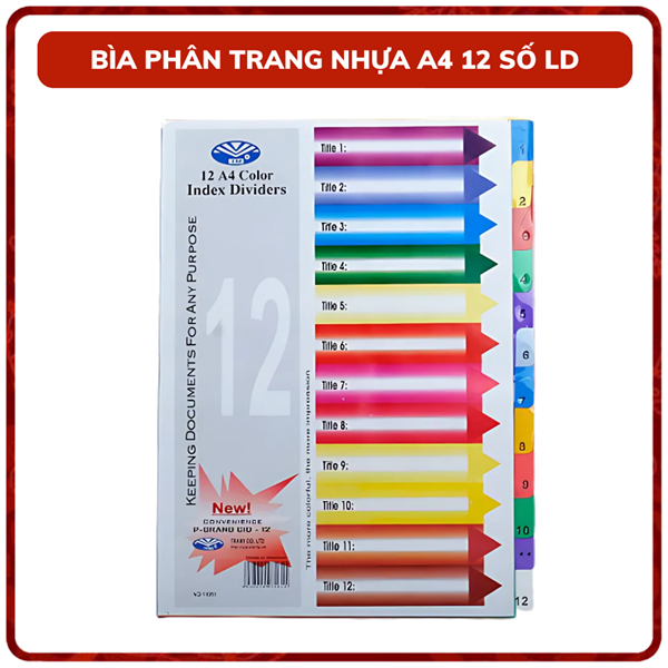BÌA PHÂN TRANG NHỰA A4 12 SỐ LD