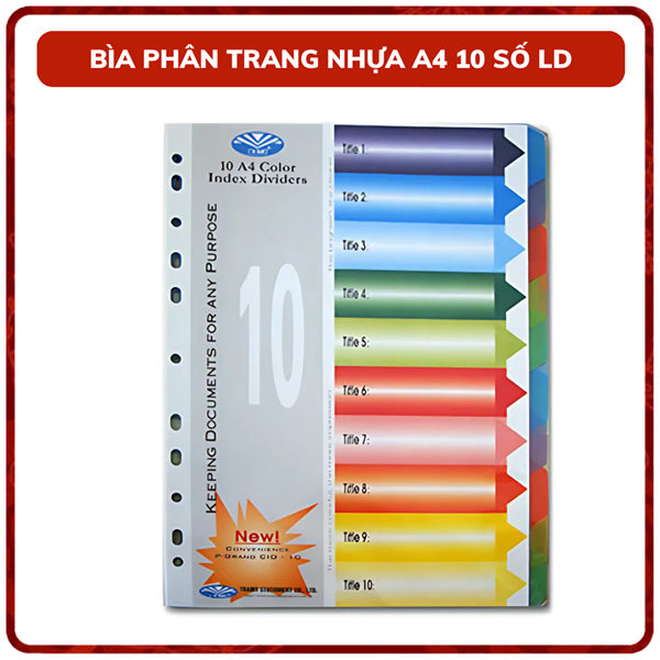 BÌA PHÂN TRANG NHỰA A4 10 SỐ LD