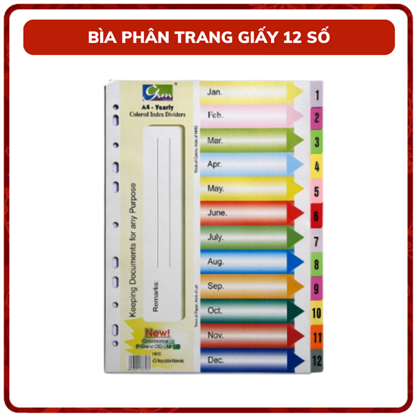BÌA PHÂN TRANG GIẤY 12 SỐ - THÙNG/100