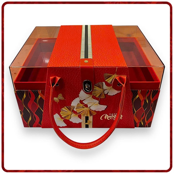 HỘP QUÀ DA CAO CẤP 2 TẦNG CÓ QUAI XÁCH