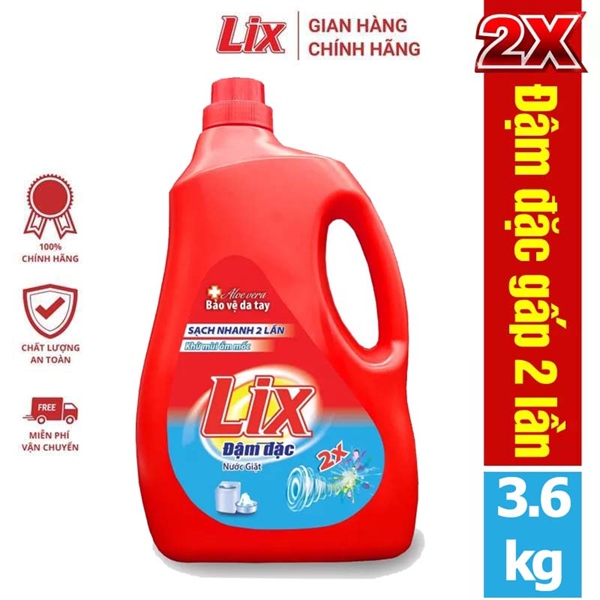 NƯỚC GIẶT LIX ĐẬM ĐẶC 2X 3.6KG - THÙNG/4 - BÌNH