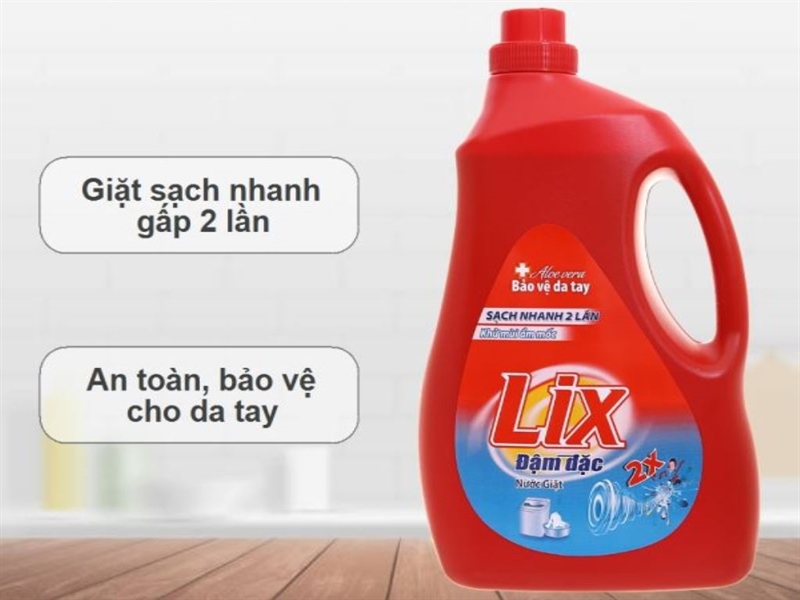 Nước giặt Lix dạng lỏng có khả năng hòa tan nhanh và thấm sâu vào từng sợi vải, loại bỏ vết bẩn khó chịu và bảo vệ màu sắc sợi vải.