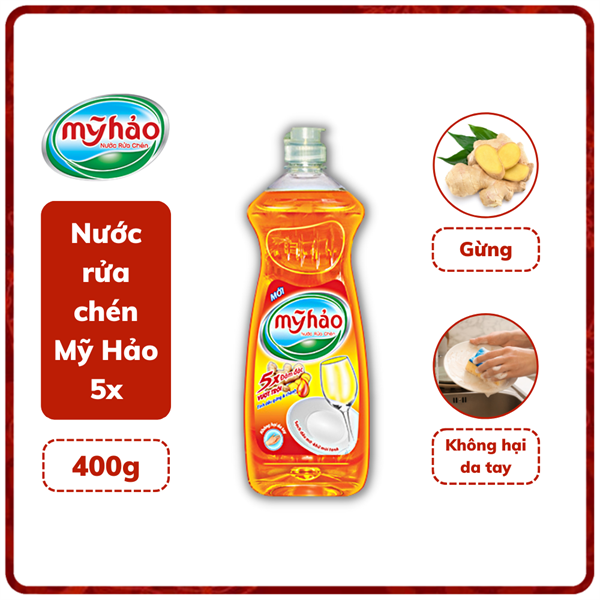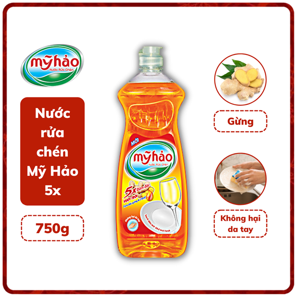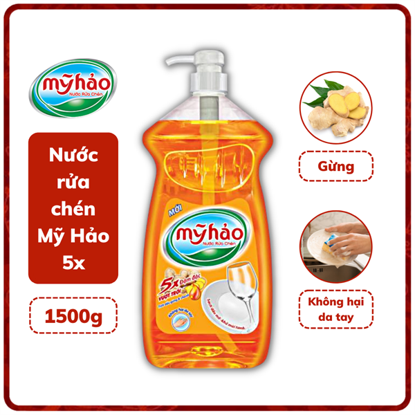 NƯỚC RỬA CHÉN MỸ HẢO 5X HƯƠNG GỪNG 400G, 750G, 1.5KG - CHAI