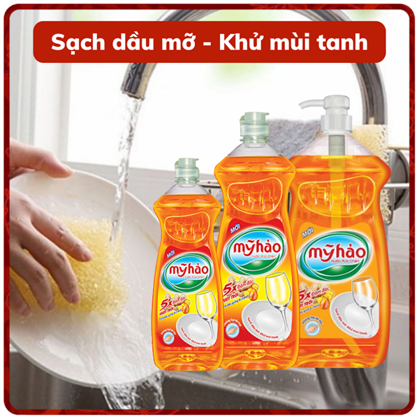NƯỚC RỬA CHÉN MỸ HẢO 5X HƯƠNG CHANH 400G, 750G, 1.5KG