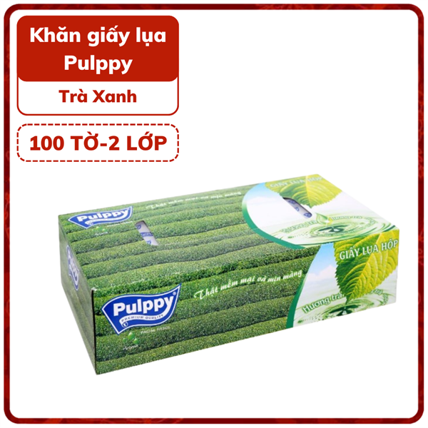 PULPPY KHĂN GIẤY LỤA TRÀ XANH HỘP 100 TỜ 2 LỚP - LÔC/6 - THÙNG/60 - HỘP